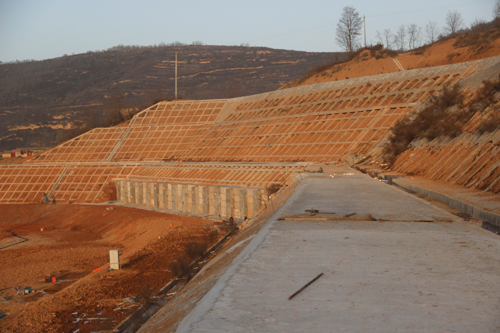 本工程開(kāi)工時(shí)間 2012年12月竣工時(shí)間 2015年11月,歷時(shí)37個(gè)月。共完成抗滑樁7668m3,擋土板1429m3,灌注樁203.47m3,微型樁18741m,混凝土連系梁320.68m3,肋柱擋墻410.29m3,預(yù)應(yīng)力錨索18450m,錨桿6750m,M7.5漿砌石擋墻5512.16m3,加筋土22358m3,仰斜排水孔4630m,截排水溝1878.45m3,滲水盲溝71.67m3,平臺(tái)硬化324.5m3,泄水孔1047.5m,土方553894m3,變形監(jiān)測(cè)1750點(diǎn)次。