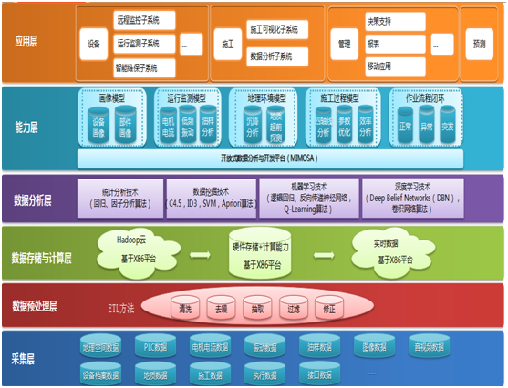 本項(xiàng)目在研究盾構(gòu)的運(yùn)行狀態(tài)進(jìn)行監(jiān)控和管理的基礎(chǔ)上,將盾構(gòu)運(yùn)行狀態(tài)參數(shù)及工況數(shù)據(jù),通過采集終端經(jīng)PLC、光纖、路由器、VPN隧道傳輸至遠(yuǎn)程數(shù)據(jù)中心,數(shù)據(jù)存儲(chǔ)使用工業(yè)級(jí)實(shí)時(shí)數(shù)據(jù)庫,采集頻率可達(dá)毫秒級(jí)。業(yè)務(wù)基礎(chǔ)—對(duì)各類盾構(gòu)機(jī)(機(jī)、電、液)深入分析,提供盾構(gòu)軌跡、管片軌跡、單環(huán)分析、掘進(jìn)效率等統(tǒng)計(jì)分析功能,以便管理決策層把握各項(xiàng)目施工情況。構(gòu)建盾構(gòu)/TBM施工與健康管理平臺(tái),實(shí)現(xiàn)以下四個(gè)功能:1、盾構(gòu)遠(yuǎn)程監(jiān)控,2、智能維保,3、盾構(gòu)施工輔助巡航,4、組態(tài)化模塊定制。進(jìn)行盾構(gòu)施工大數(shù)據(jù)相關(guān)性、關(guān)聯(lián)分析、影響因素分析,關(guān)鍵子系統(tǒng)健康管理和故障診斷,基于大數(shù)據(jù)的比較、聚類、預(yù)測實(shí)現(xiàn)對(duì)盾構(gòu)施工進(jìn)行遠(yuǎn)程管理。