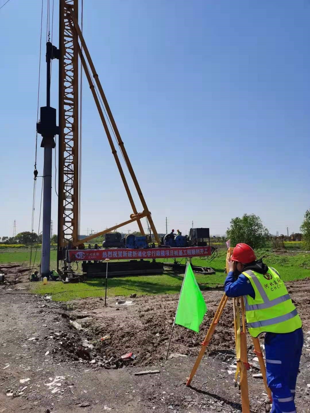 新建新浦化學(xué)行政樓(研發(fā)科創(chuàng))項(xiàng)目位于江蘇省泰興市濱江鎮(zhèn),由新浦化學(xué)(泰興)有限公司投資建設(shè),我公司負(fù)責(zé)場(chǎng)平工程及樁基工程施工(含試樁)。主要工作內(nèi)容包括行政樓主樓和地庫(kù)全部樁基礎(chǔ),共計(jì)預(yù)應(yīng)力管樁1249根,其中314根樁樁徑為0.6m,935根樁樁徑為0.5m,累計(jì)施工預(yù)應(yīng)力管樁延米數(shù)24016m³。