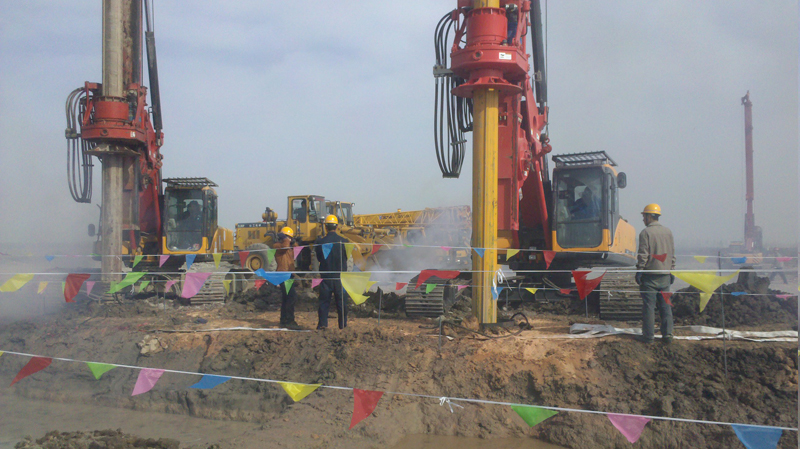 施工內(nèi)容包括:灌注樁鋼筋籠制作、運輸及安放,鉆孔樁成孔、商品砼采買、砼灌注等工作。我公司采用旋挖鉆機成孔,樁數(shù)總計906根,樁徑600mm,樁身混凝土強度等級C35,灌注混凝土9103m3。