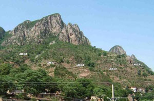磁縣陶泉鄉(xiāng)南王莊位于冀西南群山之中。近年來,北側(cè)“道士帽”山峰下曾發(fā)生過巖石崩落,造成一處民宅被砸,威脅約20余戶居民。隨著時間的推移,在各種地質(zhì)作用下,尤其是降水、凍融的影響,存在著繼續(xù)發(fā)生崩塌的隱患。為了村民的生命、財產(chǎn)安全,達到防災(zāi)減災(zāi)的目的,受磁縣國土資源局的委托,我公司進行了崩塌治理勘察工作。